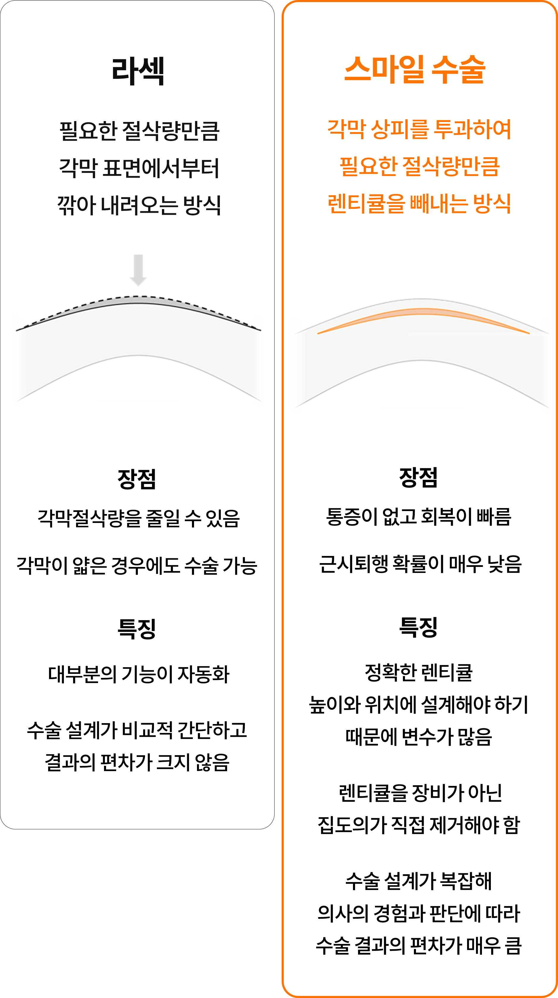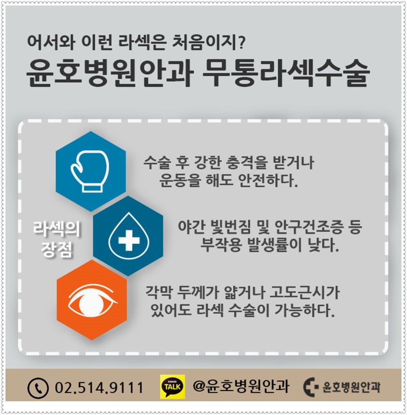- 수술 종류: 라식수술에는 다양한 방법이 있습니다. 일반적인 라식, 엑시머 레이저를 이용한 라섹, 인트라 콜라겐을 사용하는 스마일 수술 등이 있습니다. 각 방법마다 수술성향과 가격대가 다르게 설정되어 있습니다.