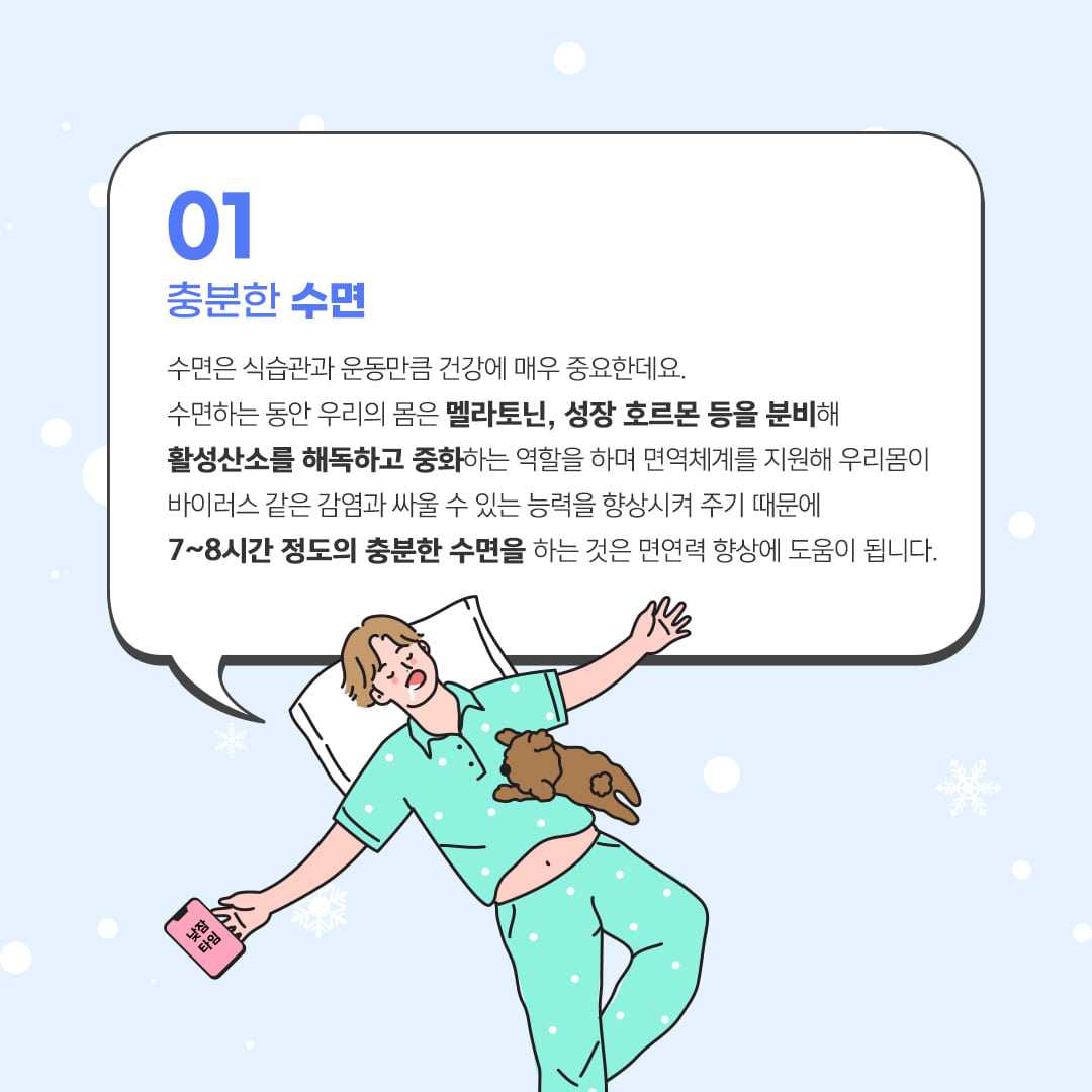 이러한 환경은 깊은 수면을 유도하여 면역력 강화에 도움을 줄 수 있습니다.