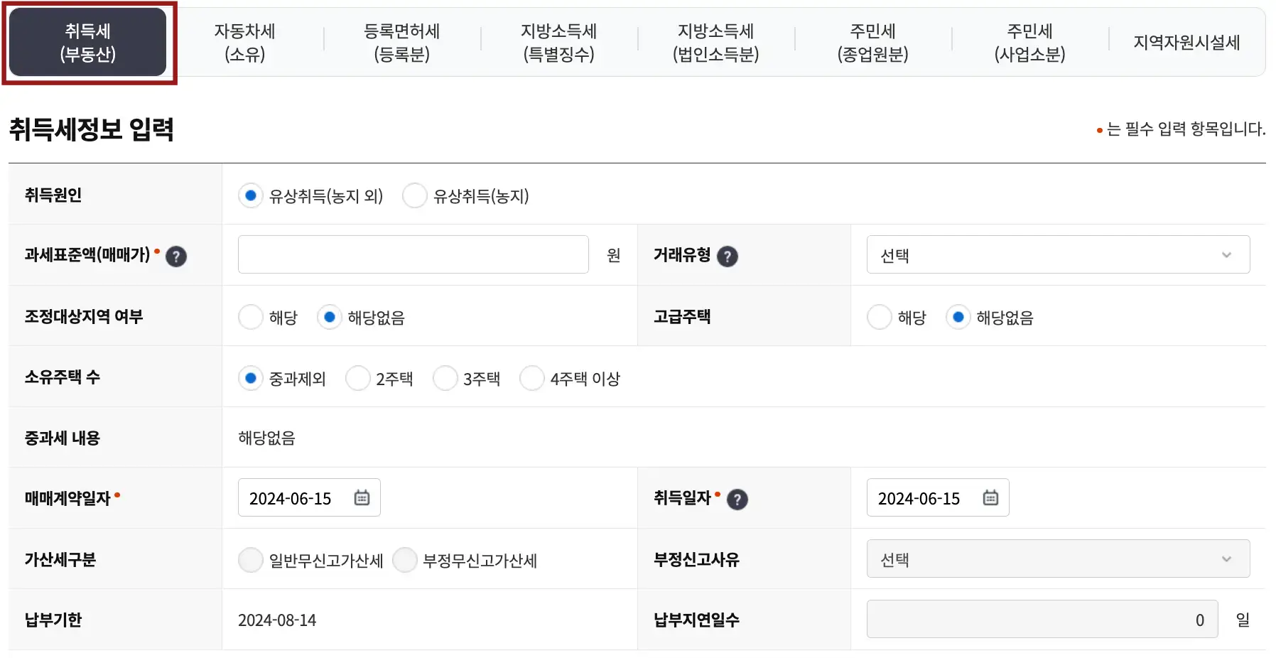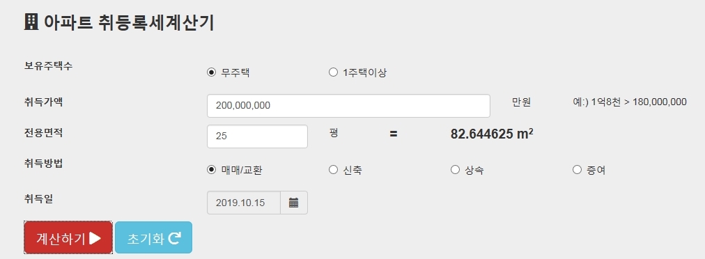 취득세 계산 예시