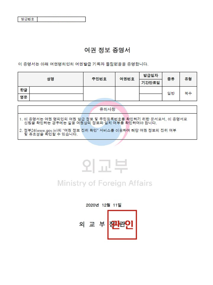 여권 정보 확인 방법